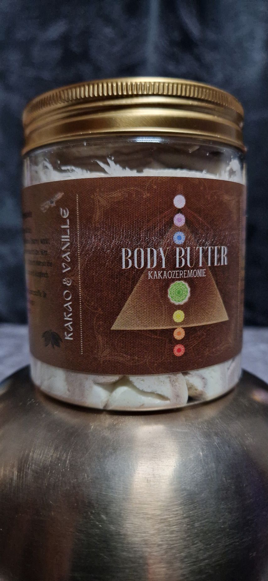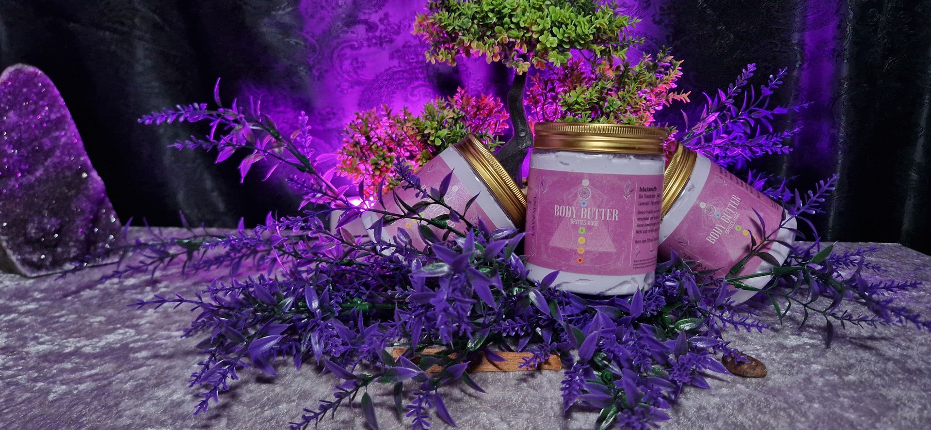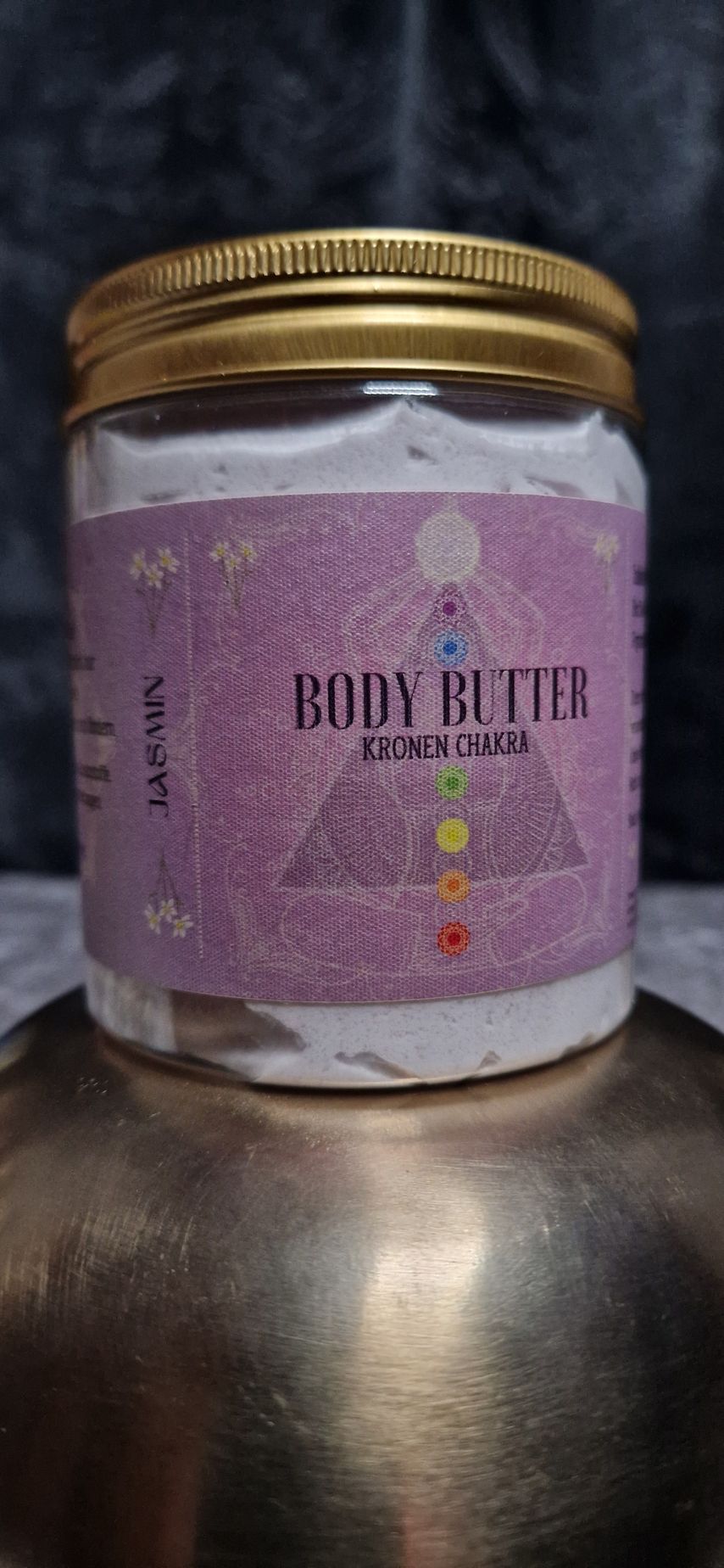 Chakra-Bodybutter-Creamy, ist eine speziell, auf die sieben Chakren abgestimmte, intensive Pflegecreme, für die Haut, die reich an Nährstoffen und Feuchtigkeit ist. Es besteht aus vier verschiedenen Hauptölen und die von mir ausgesuchten, zu den Chakren passenden, ätherischen Ölen.